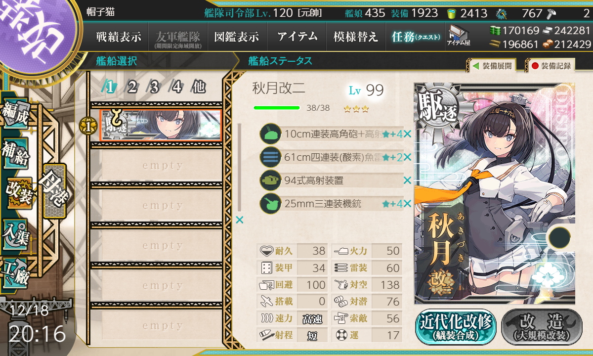 リ.il.゚ ヮ゚ノi 「初月改二に続いて秋月型二人目の改二!」