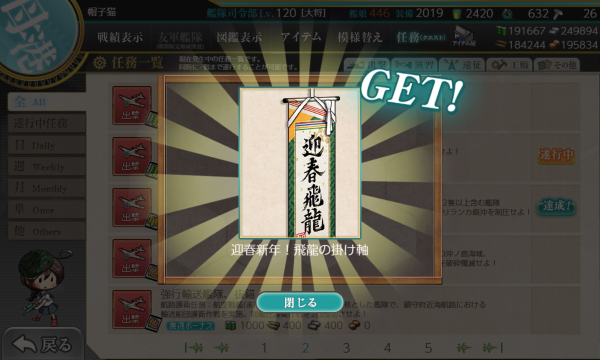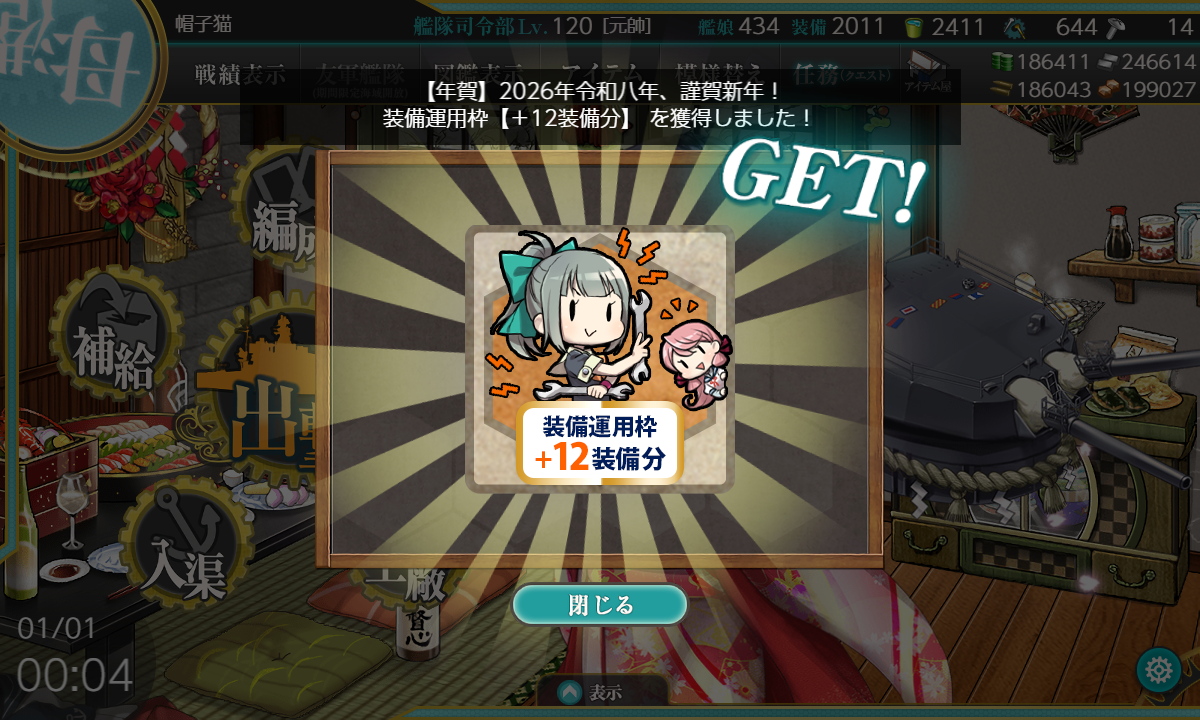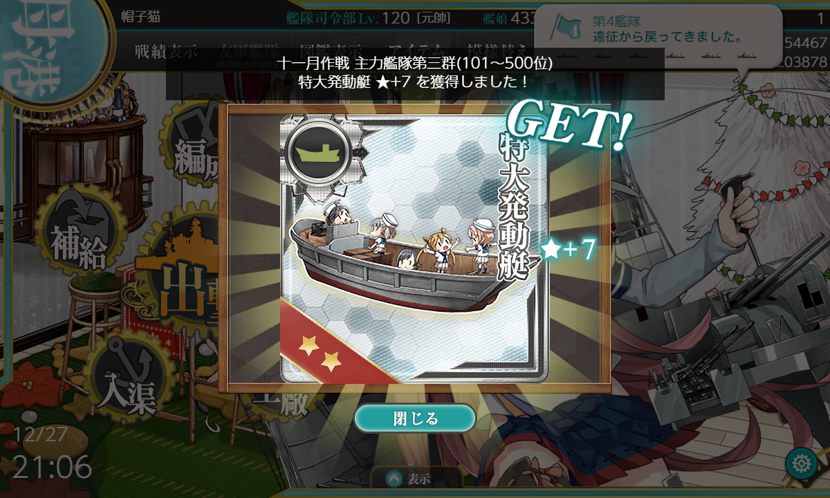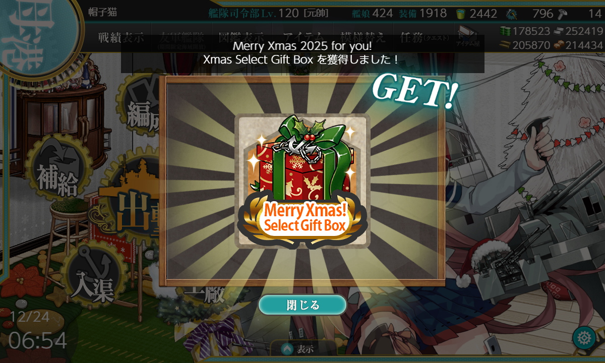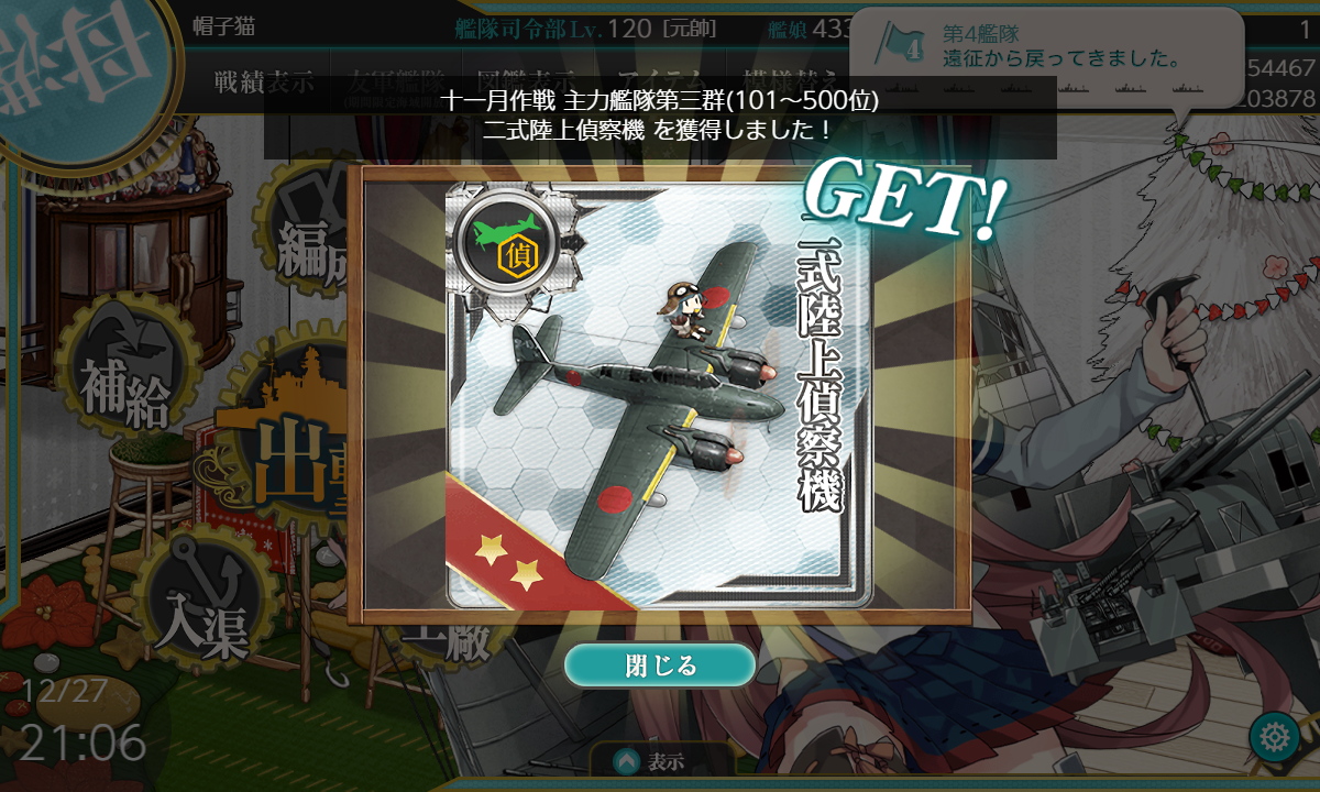 1/25 日曜日 最近の艦これ クリスマス&年末年始