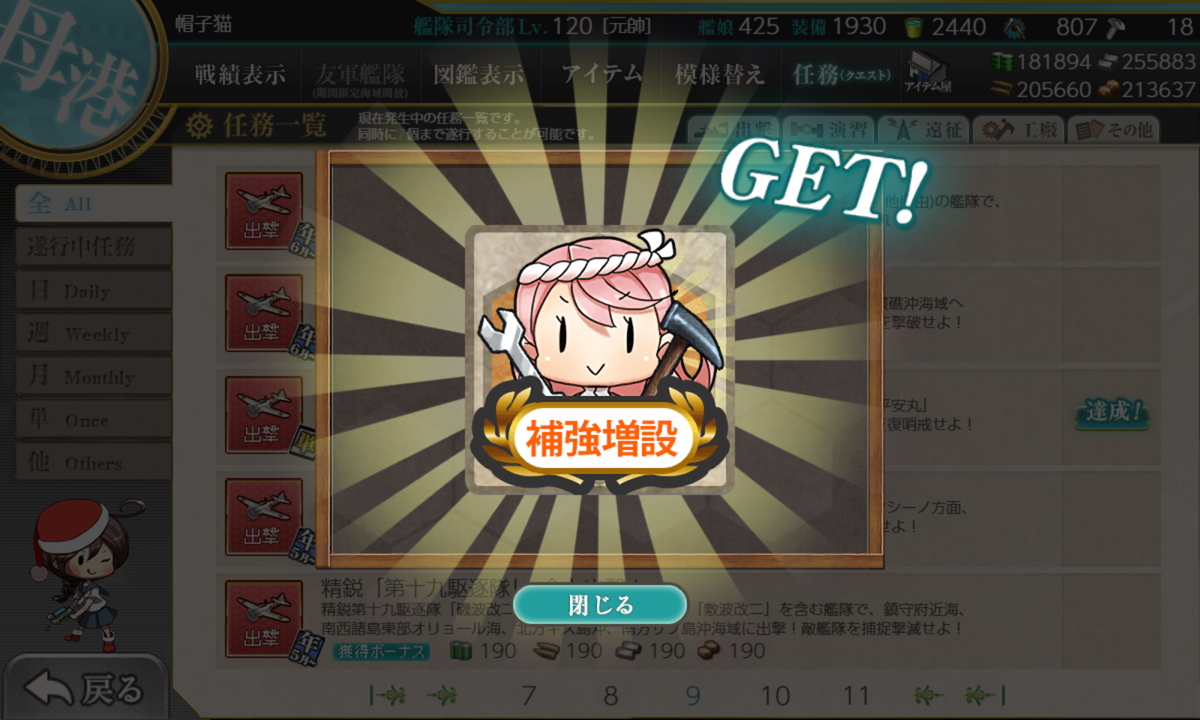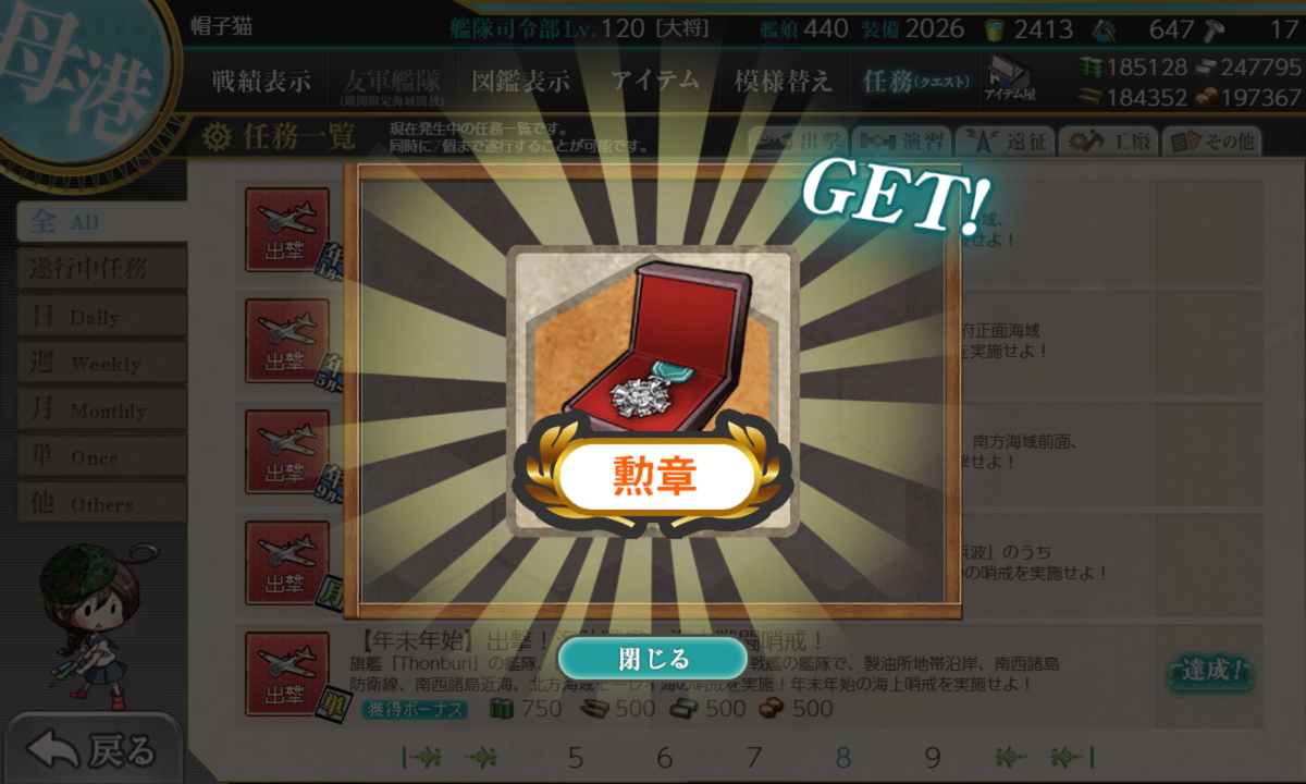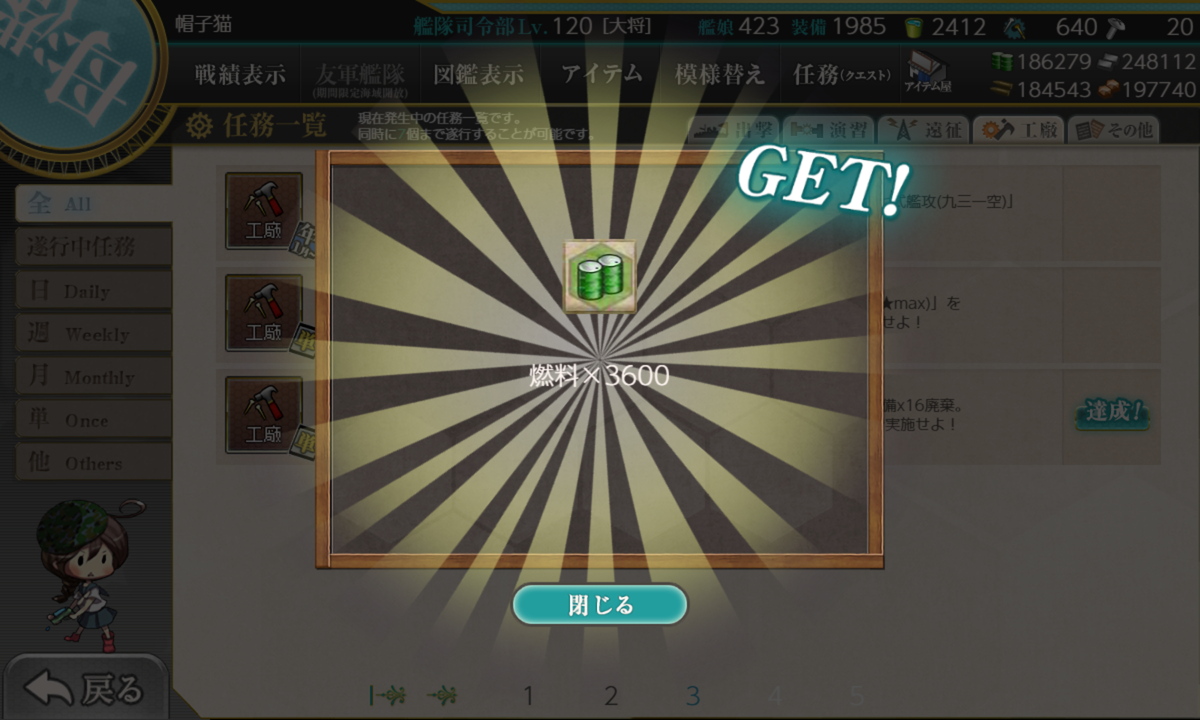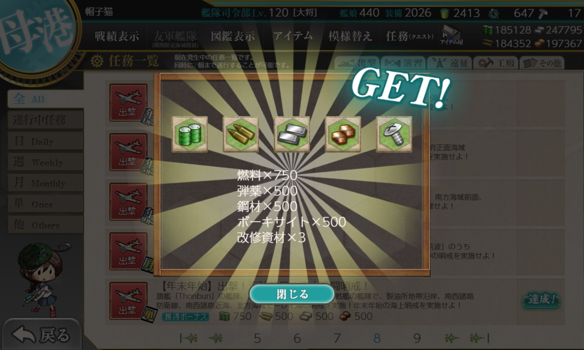リil;゚ ー゚ノi 「ほぼ仕事最終日あたりにまとめて片付けています。それまで仕事が忙しくて任務進められませんでした」