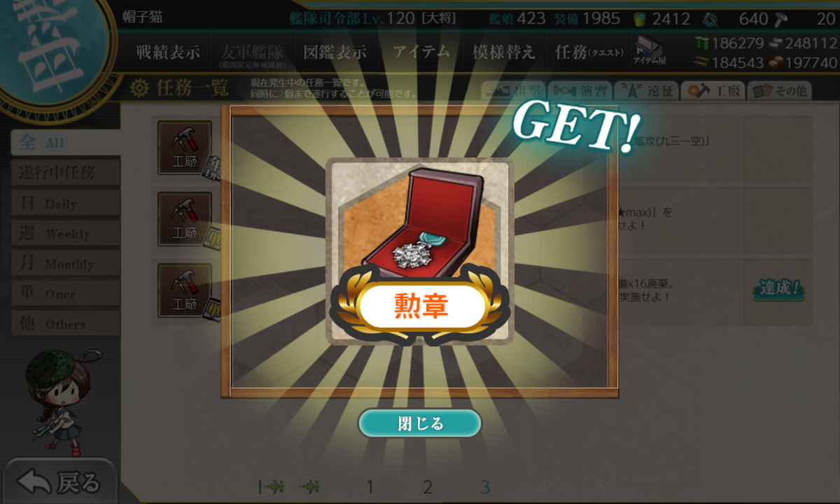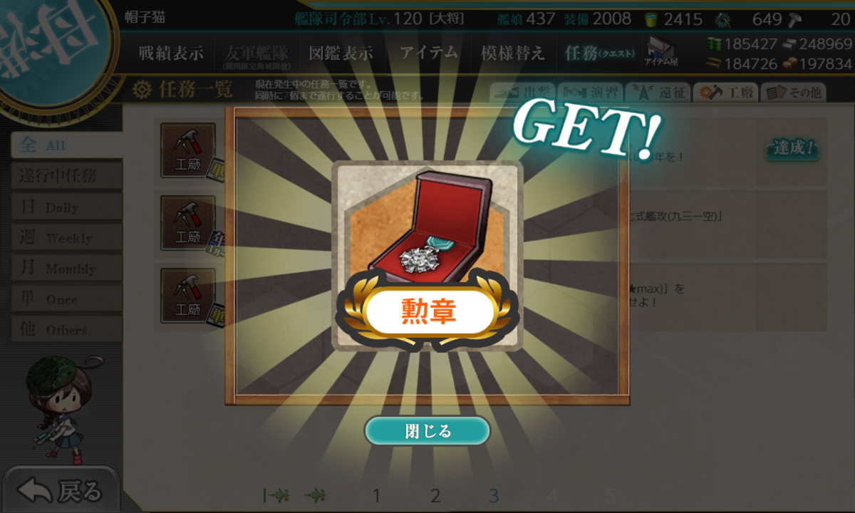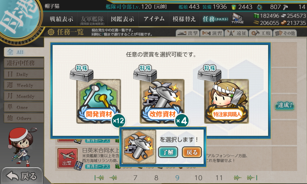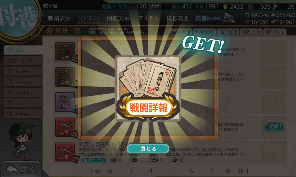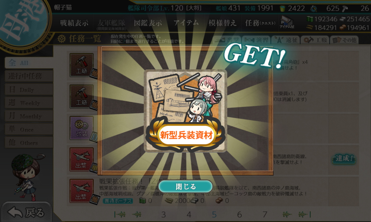 リil;゚ ー゚ノi 「ほぼ仕事最終日あたりにまとめて片付けています。それまで仕事が忙しくて任務進められませんでした」