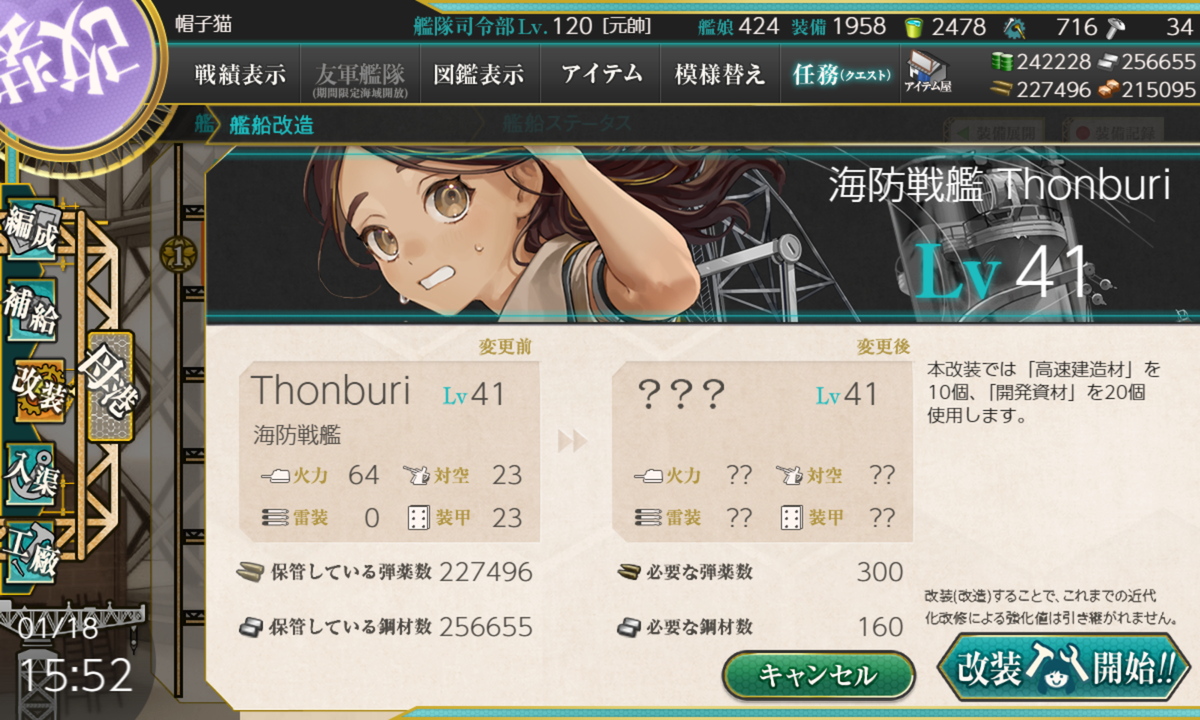 ミ,,, ゚Д゚彡「7-3-1を50周くらいして海防戦艦トンブリを手に入れました」